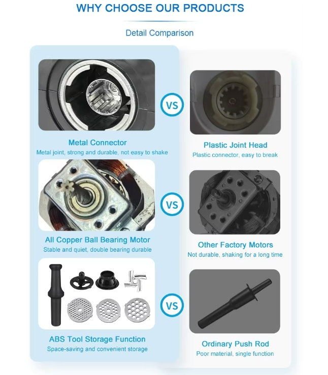 Электрические мясорубки удобнее чистить, чем ручные мясорубки, их можно разбирать и чистить для соблюдения гигиены.